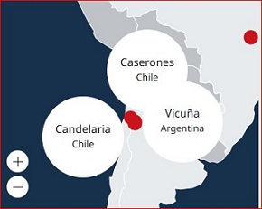 Candelaria (participación del 80%. Chile):  Candelaria produjo 37.129 toneladas de cobre y 19.899 onzas de oro en concentrado (considerando el 100%). La actividad minera se centró en la Fase 11 y la producción siguió beneficiándose de un alto rendimiento en la planta de procesamiento, gracias a la alimentación de mineral más blando, el menor tamaño del mineral y un mayor tiempo de funcionamiento del molino de bolas. El costo en efectivo[4] de US$1,87 /lb se vio afectado por las menores leyes y los mayores costos de extracción, compensados ​​parcialmente por los mayores precios de los metales para los créditos por subproductos y la reducción de los cargos por tratamiento y refinación.