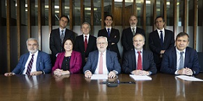 Sentados, de izquierda a derecha: Rubén Alvarado, Susana Rioseco, Máximo Pacheco, Ricardo Ramos y Carlos Díaz. De pie, de izquierda a derecha: Felipe Kilian, Jaime San Martín, Hernán Uribe, Gonzalo Aguirre y José Miguel Berguño.
