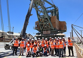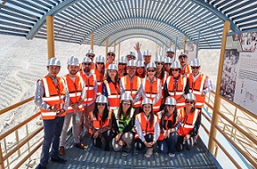 La jornada comenzó con una visita a la División Chuquicamata, donde los participantes recorrieron el mirador del histórico rajo minero, conocieron la Pala Mundial y el casco patrimonial del campamento, incluyendo el emblemático Auditorio Sindical, símbolo de la vida gremial y comunitaria de este emblemático lugar.