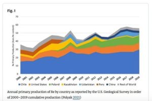 El estudio, que data del año 2016, señala que “la producción anual de Renio primario es del orden de los 50.000 kg, mientras que el reciclaje alcanza los 10.000 kg. El Renio se transa en su mayoría en contratos de largo plazo (de 5 a 10 años) entre el productor y el comprador”.
