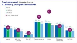 En 2025, el crecimiento de la región volvió a ubicarse por debajo del promedio mundial (2,4% frente a 3,2%), y para 2026 se prevé una expansión también inferior a la media global. Este escenario se ve condicionado por la elevada incertidumbre internacional, los cambios en las políticas comerciales de las principales economías y las tensiones geopolíticas.